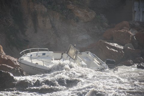 Suite aux mers fortes des derniers jours, des bateaux se sont encore échoués dans les rochers près de Puerto Coralmar...