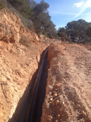 Nous avons eu confirmation qu'en dépit des détournements de fonds européens qui ont conduit les anciens dirigeants de la mairie en prison, l'autorisation du ministère de l'écologie, des costas a été désormais accordée pour poursuivre les travaux. La station haute est d'ailleurs en chantier avec des ouvriers qui sont en train de terminer l'installation des bureaux de contrôle. Pour ce qui est de la technique: un tuyau d'environ 80 cm de de diamètre va être enterré en descendant à travers les routes de notre l'urbanisation, de Puerto Coralmar et tiré sur une distance de 800 mètres au large des côtes. Cette dernière partie étant la plus compliquée puisque cette canalisation doit être enfouie et fixée au fond marin.